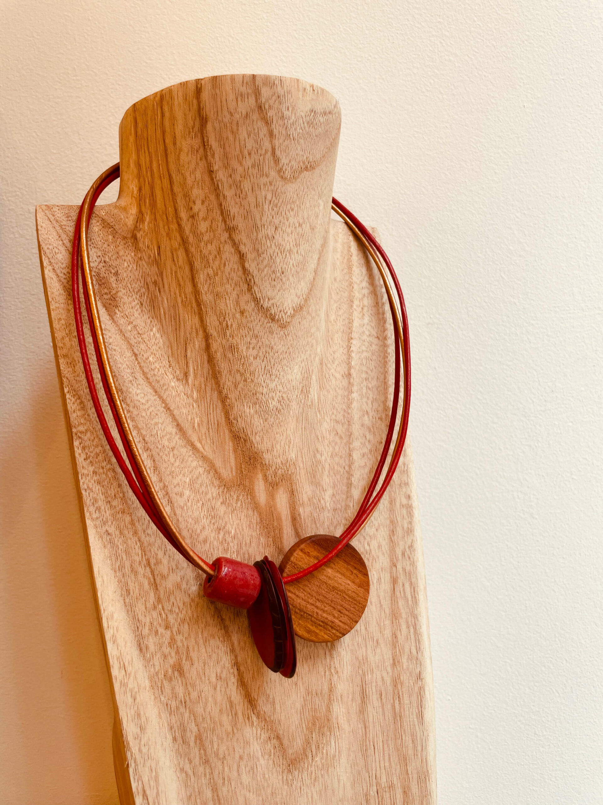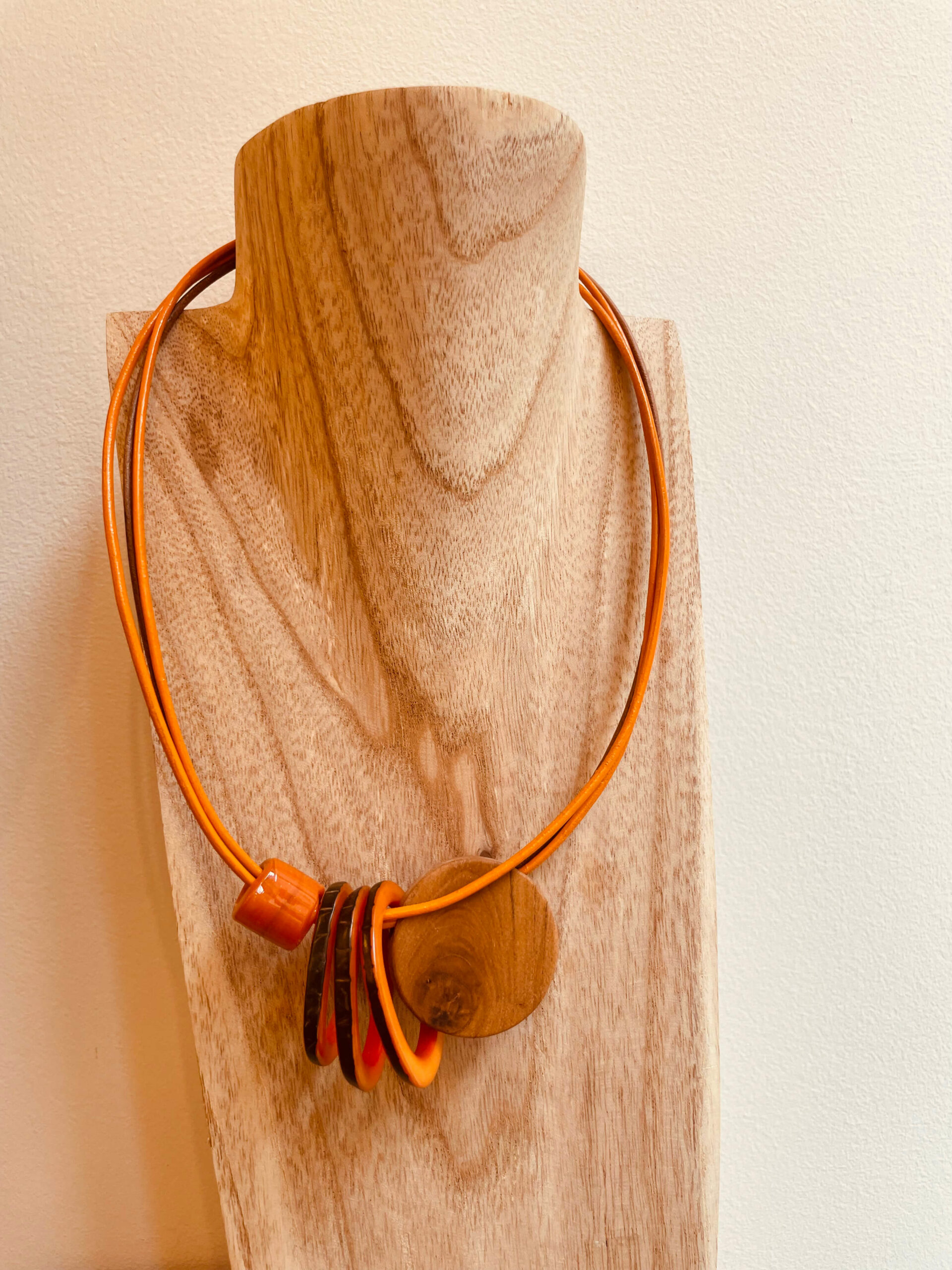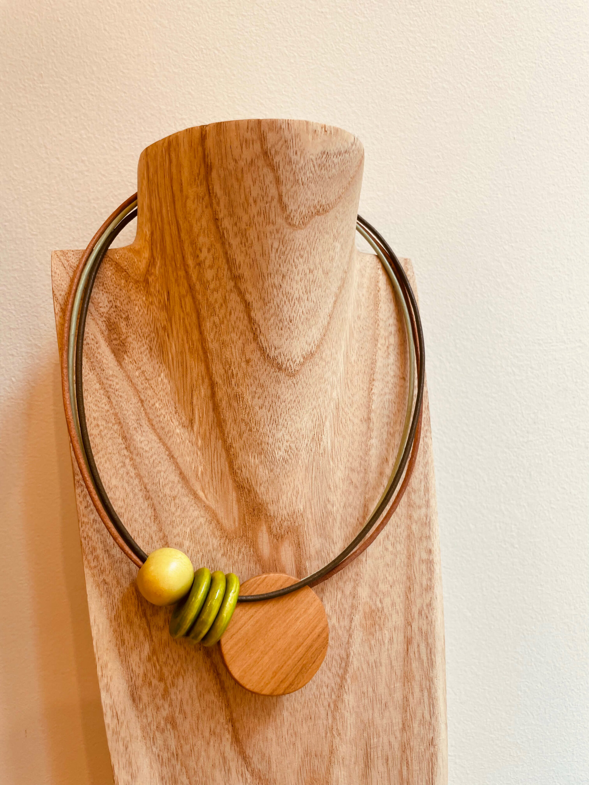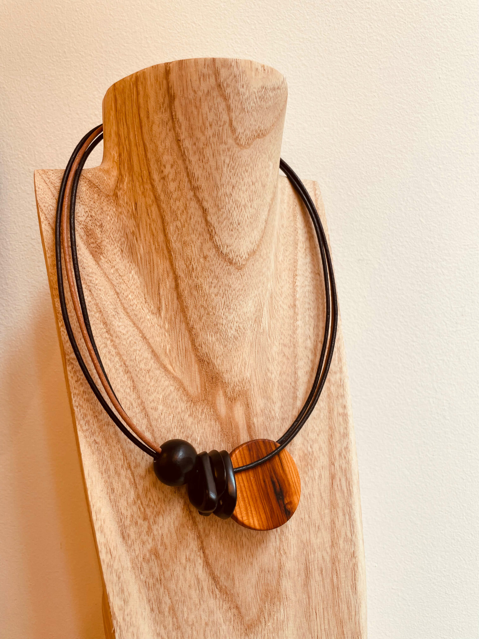 Ce collier en bois est un bijou fantaisie, travaillé avec soin et avec des matières naturelles