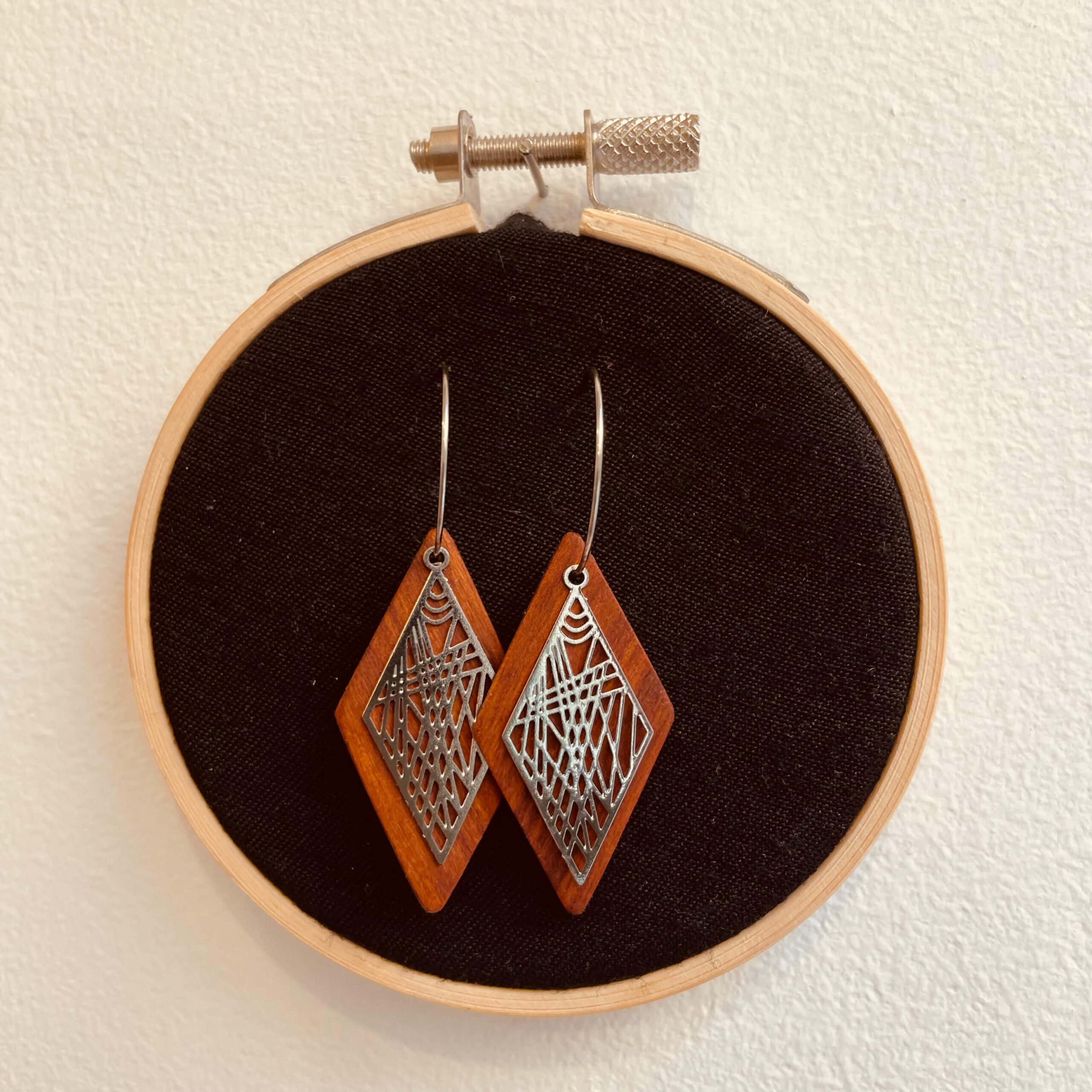 - deux pièces de bois losange, travaillée artisanalement, épaisseur 1,5mm, longueur 4cm