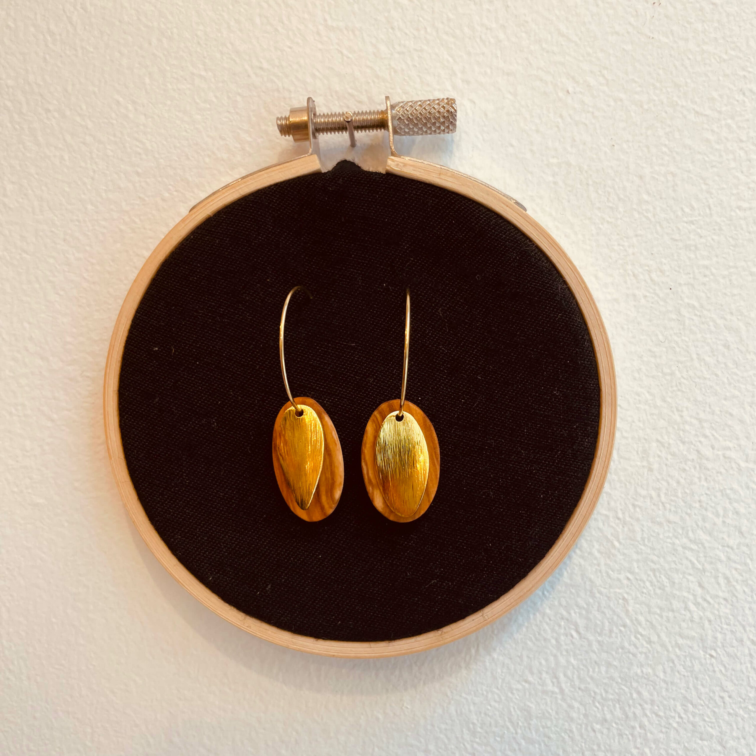 cette paire de boucles d’oreilles est un bijou en bois fait main, travaillé avec soin