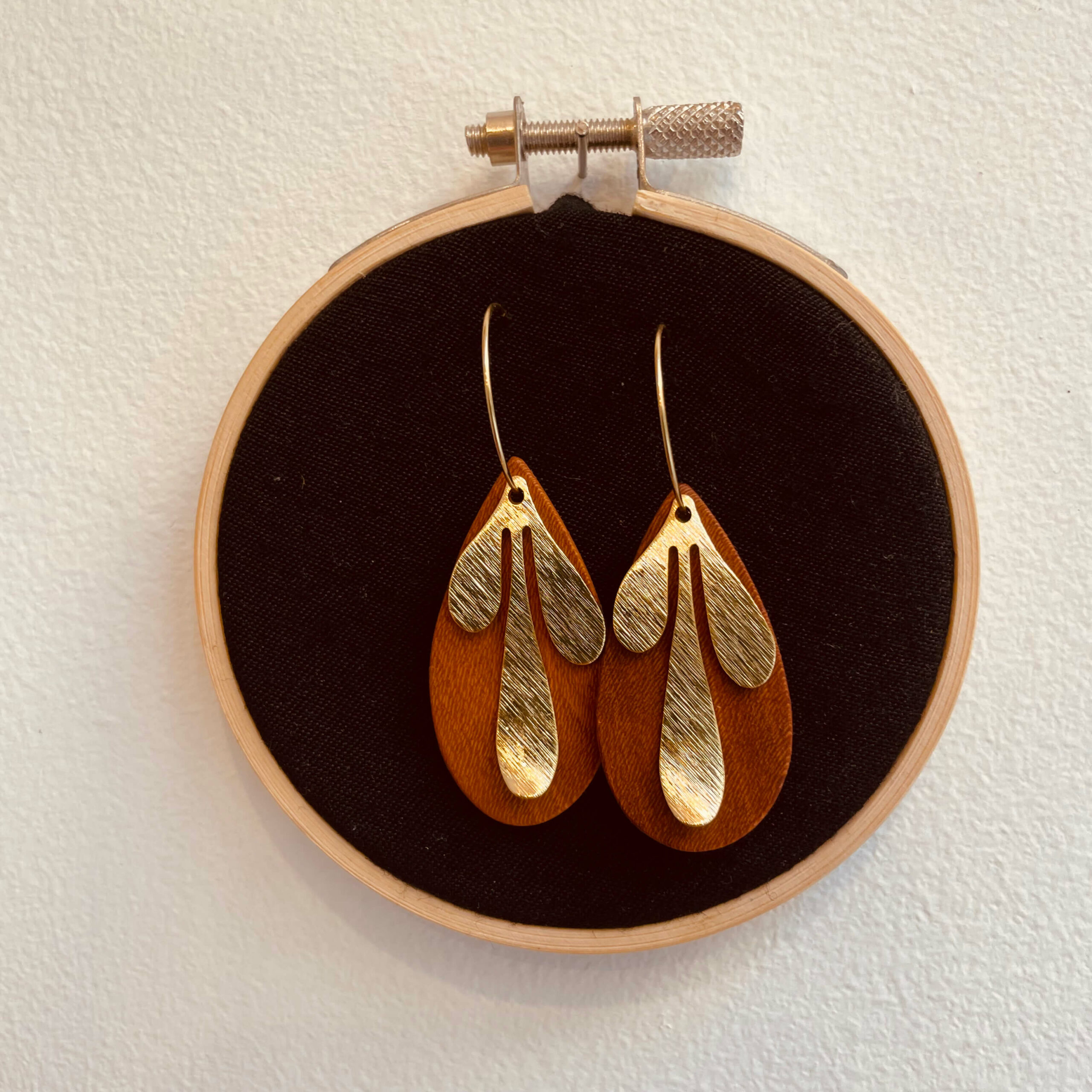 cette paire de boucles d’oreilles est un bijou en bois fait main, travaillé avec soin