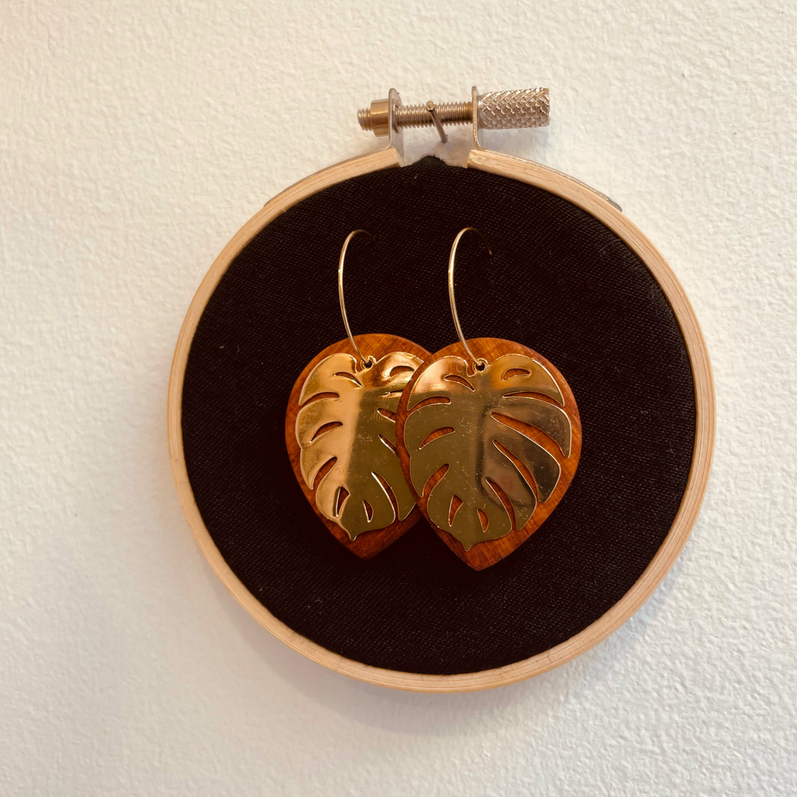 Composition des boucles d’oreilles créole doré Monstera: