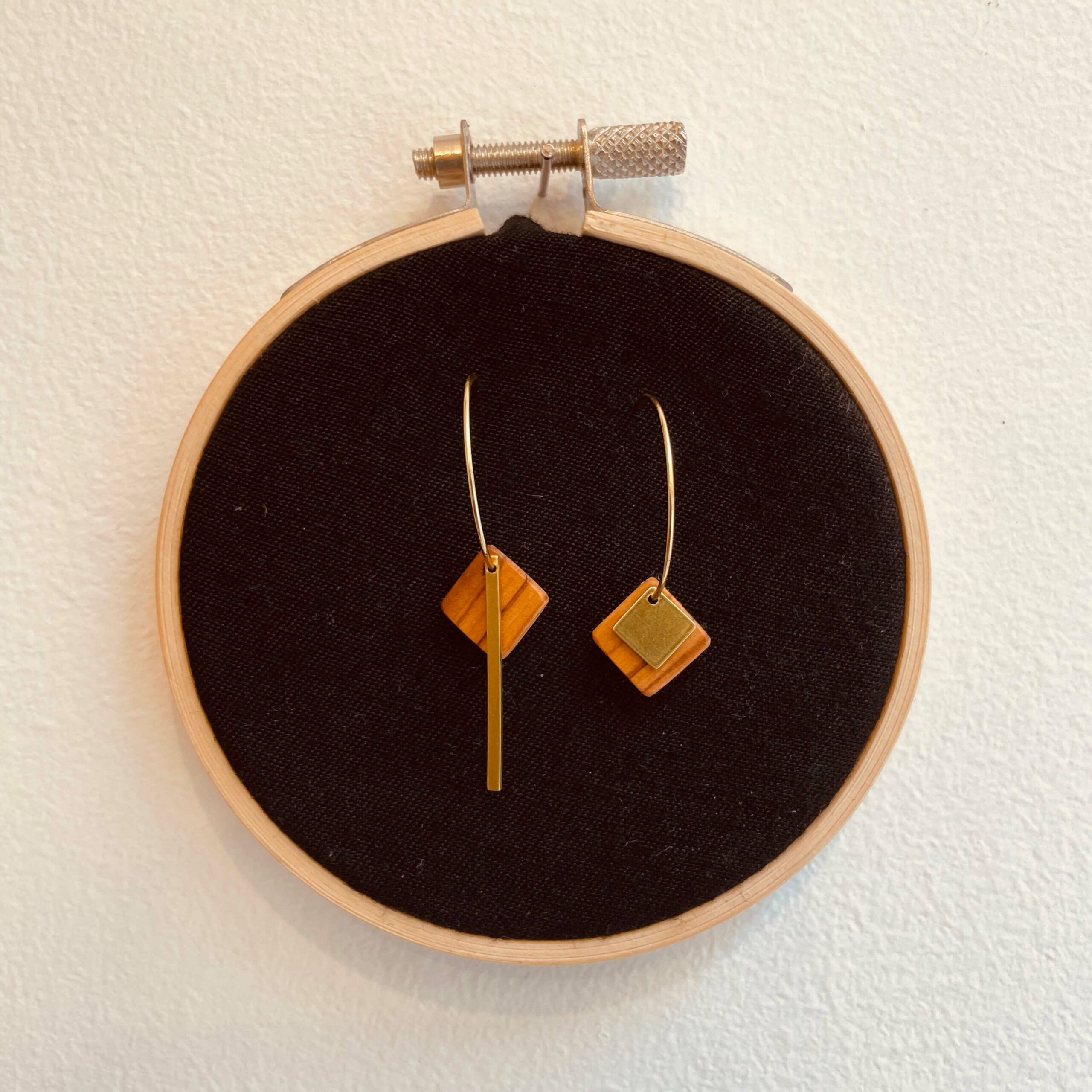 cette paire de boucles d’oreilles est un bijou en bois fait main, travaillé avec soin